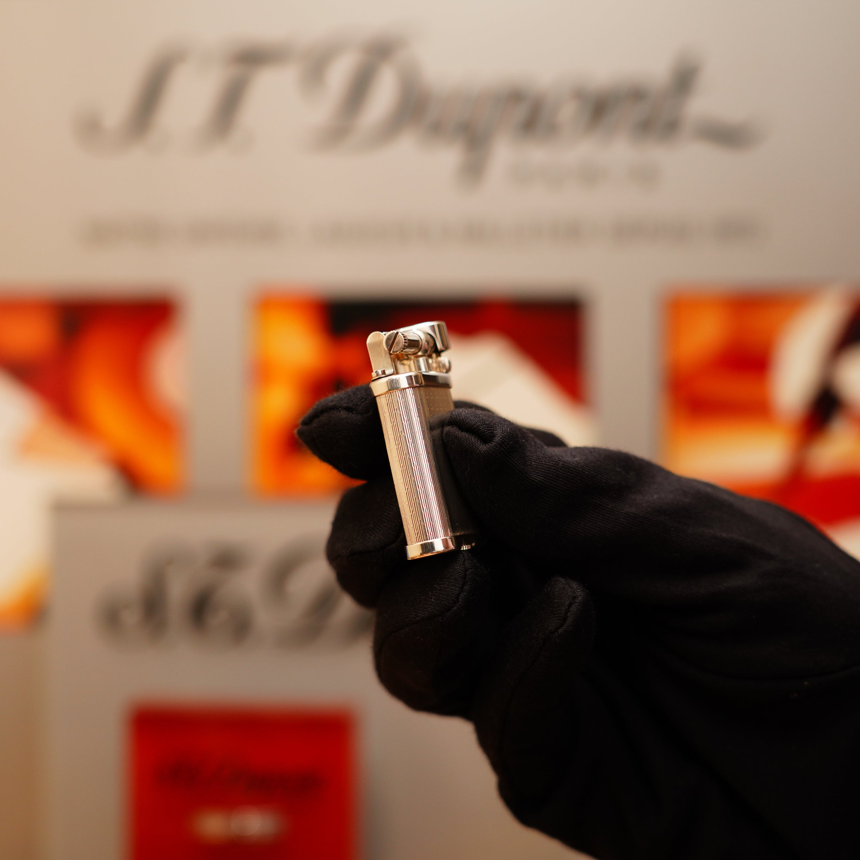 This exquisite Vintage 1990's Dunhill mini Unique Heavy Silver Finish Rare pattern Lighter is a true collector’s piece.