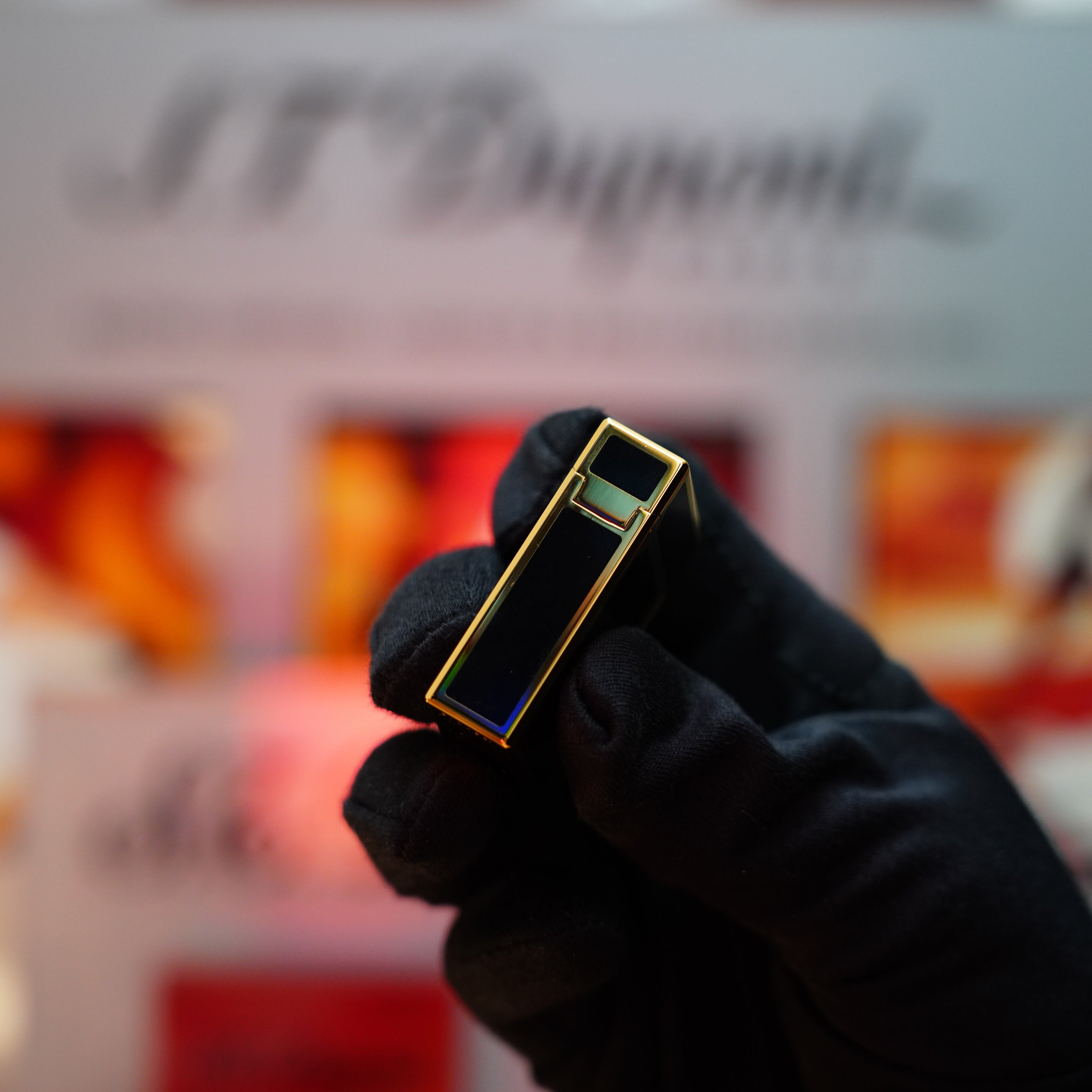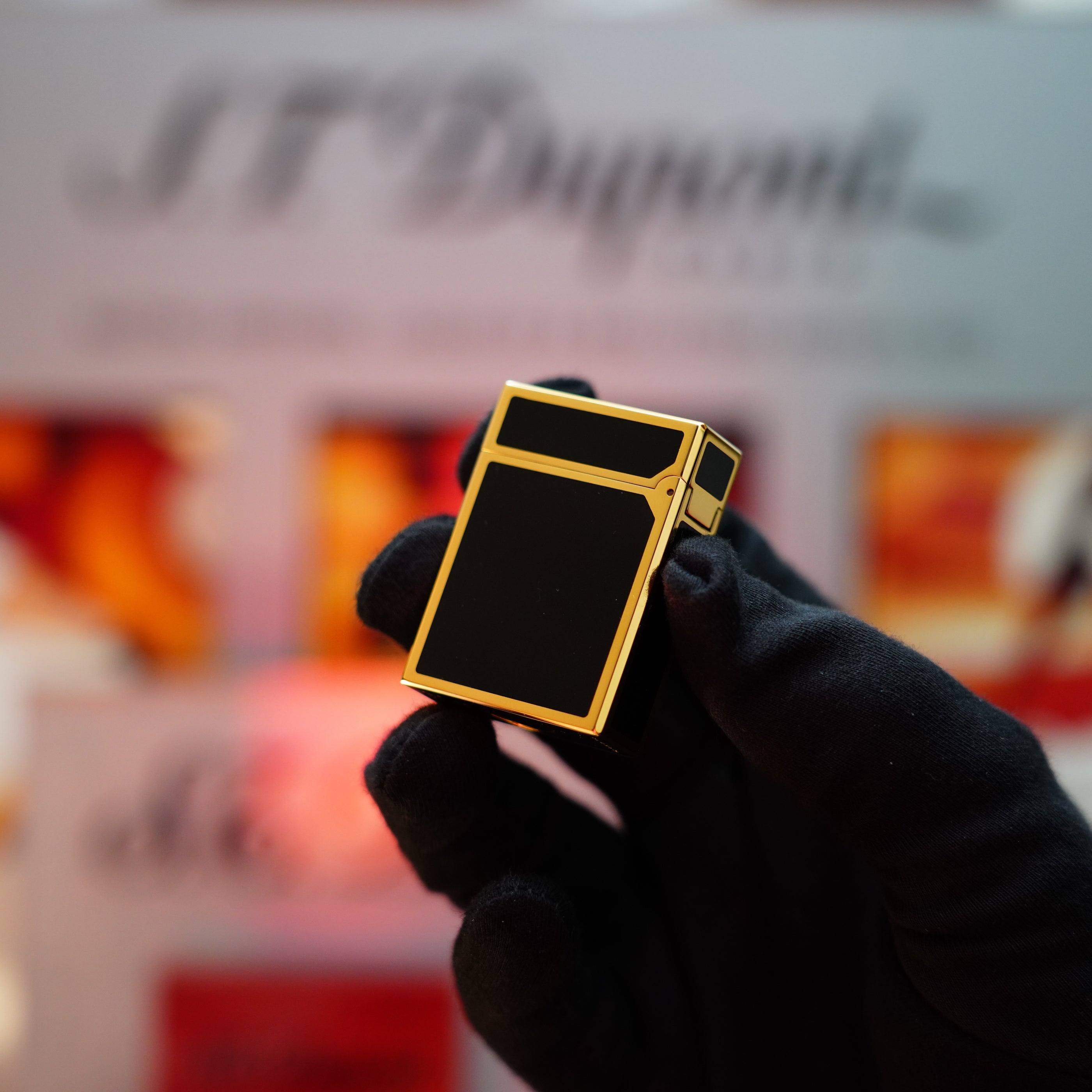 This beautiful Vintage St Dupont Noire Heavy 24k Gold Matt Black Lacquer Ligne 1 Lighter was crafted in the 1990's. It is a beautiful example of Heavy 24k Gold Plated Small Size Ligne 1 Black Natural Lacquer Series