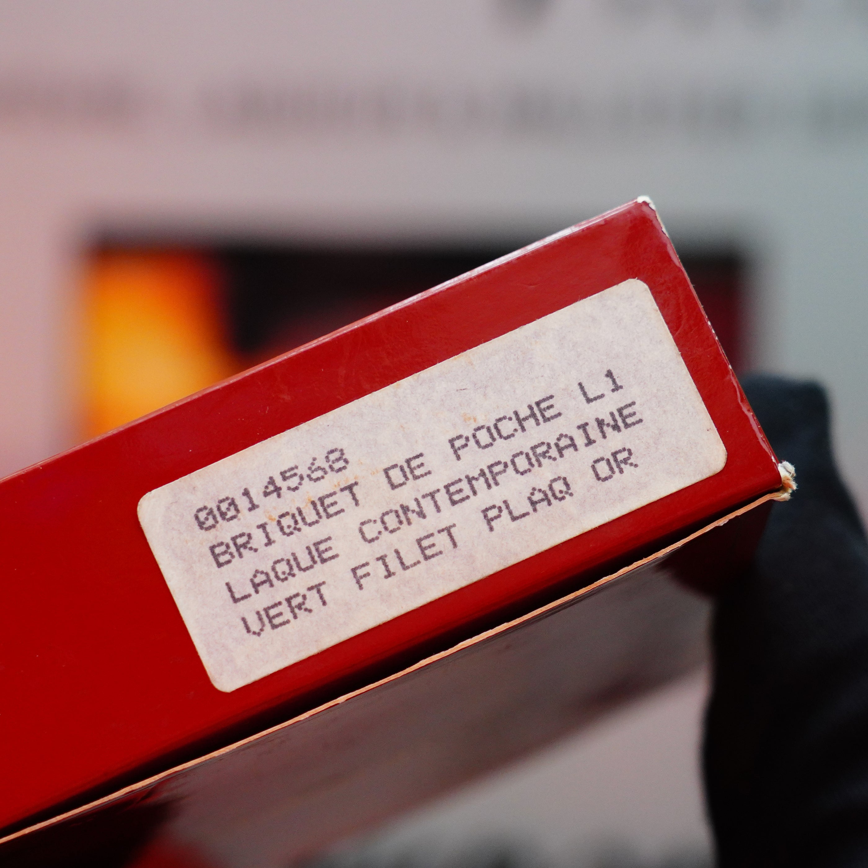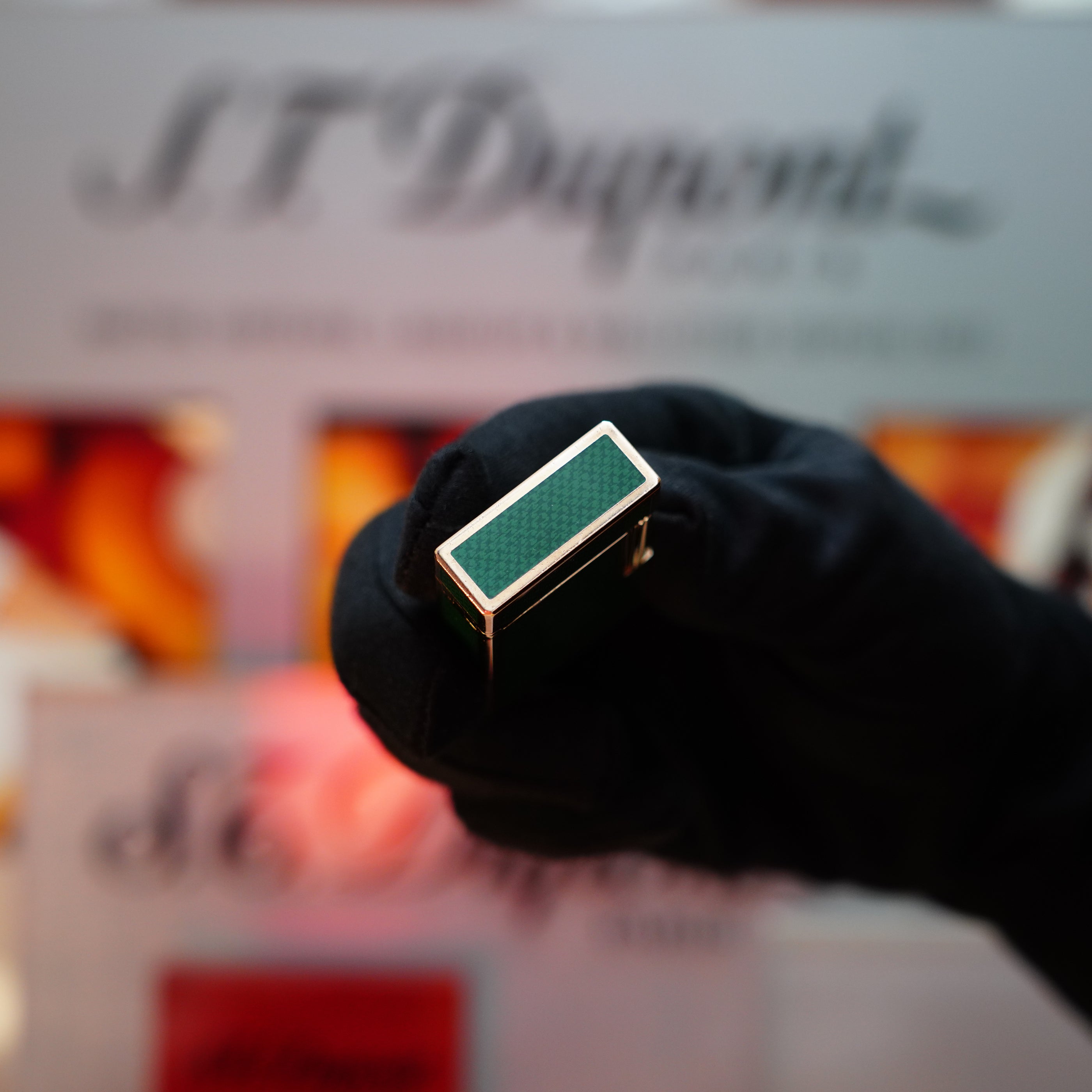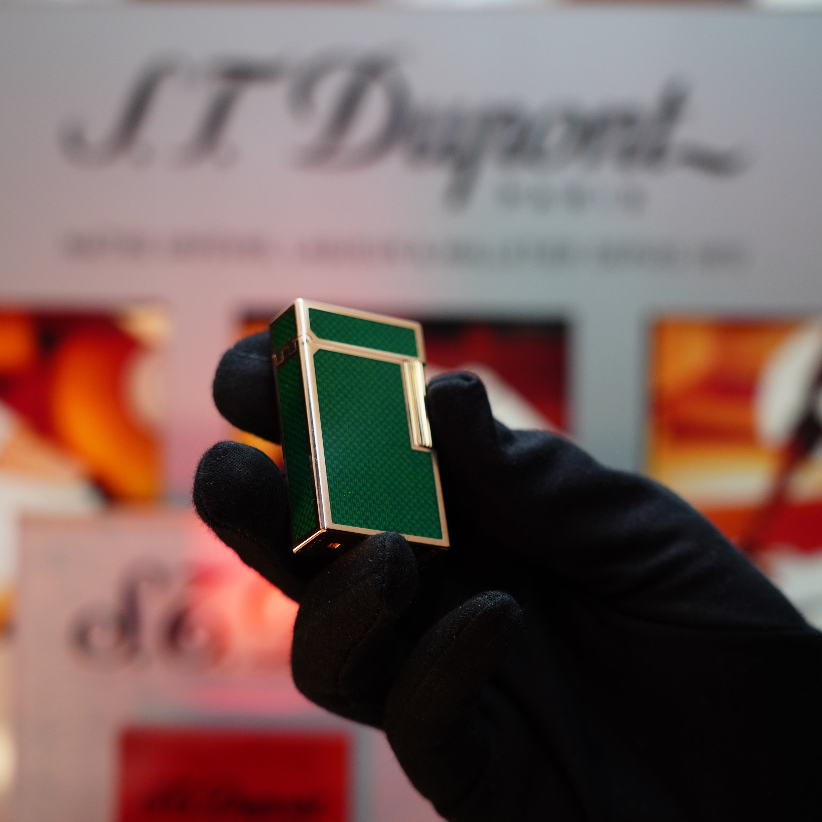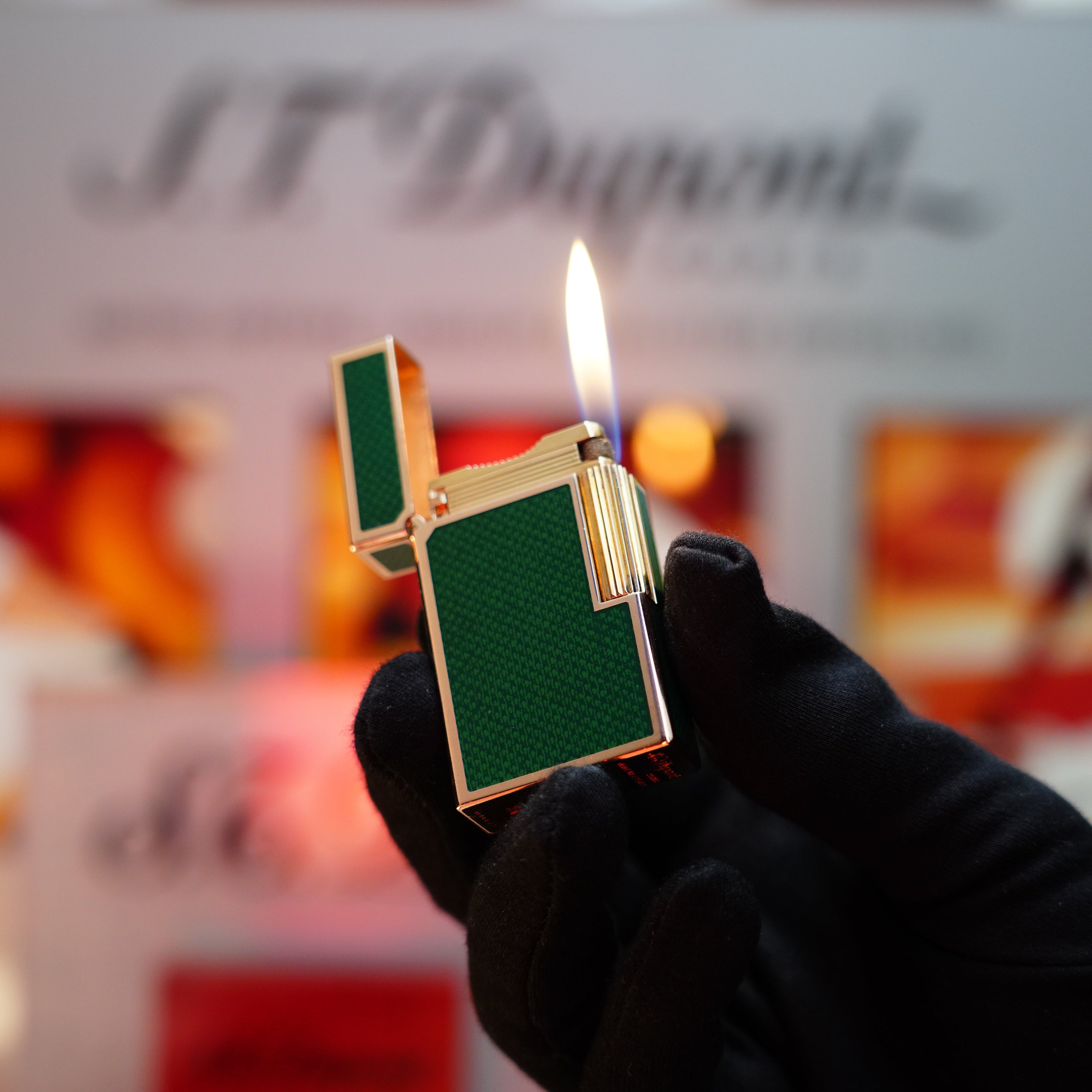 This beautiful Vintage St Dupont Rare Contemporaine Ligne 1 Green Vert Filet Plaq Lacquer 24k Gold Finish Used Lighter was crafted in the 1990. It is a beautiful example of Heavy 24k Gold Plated Limited Large ligne 1 Series