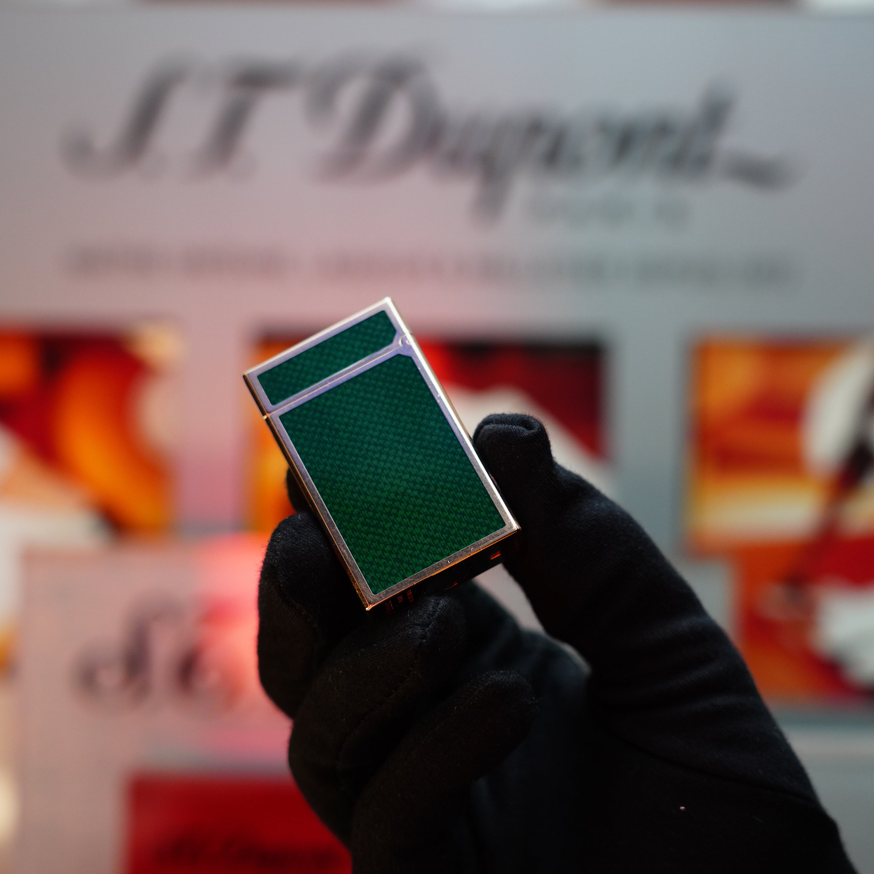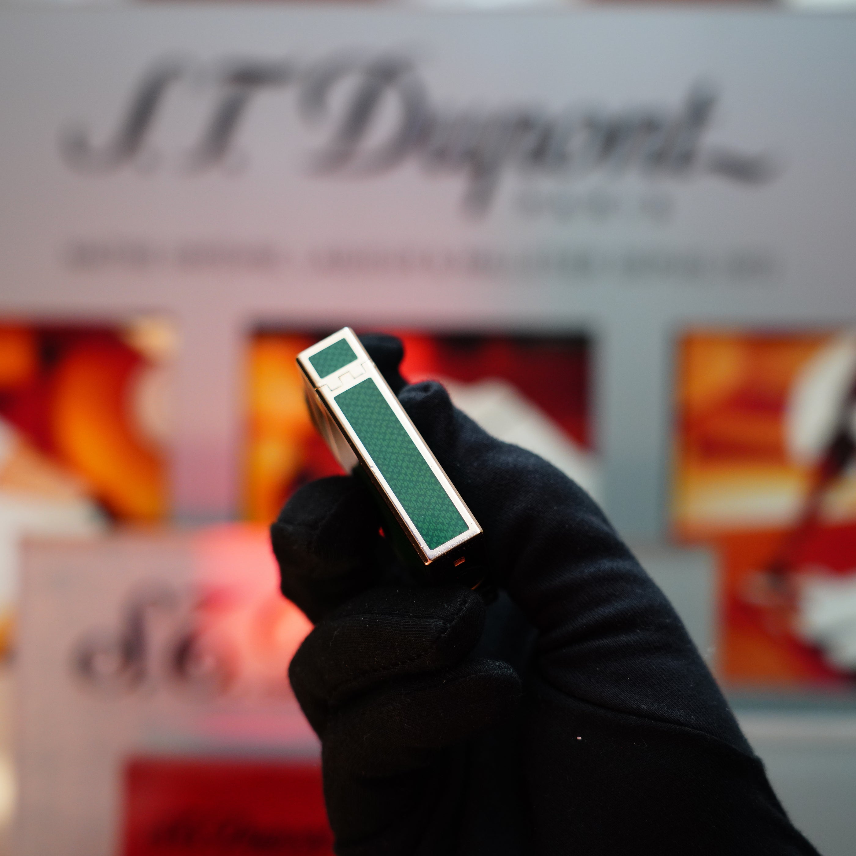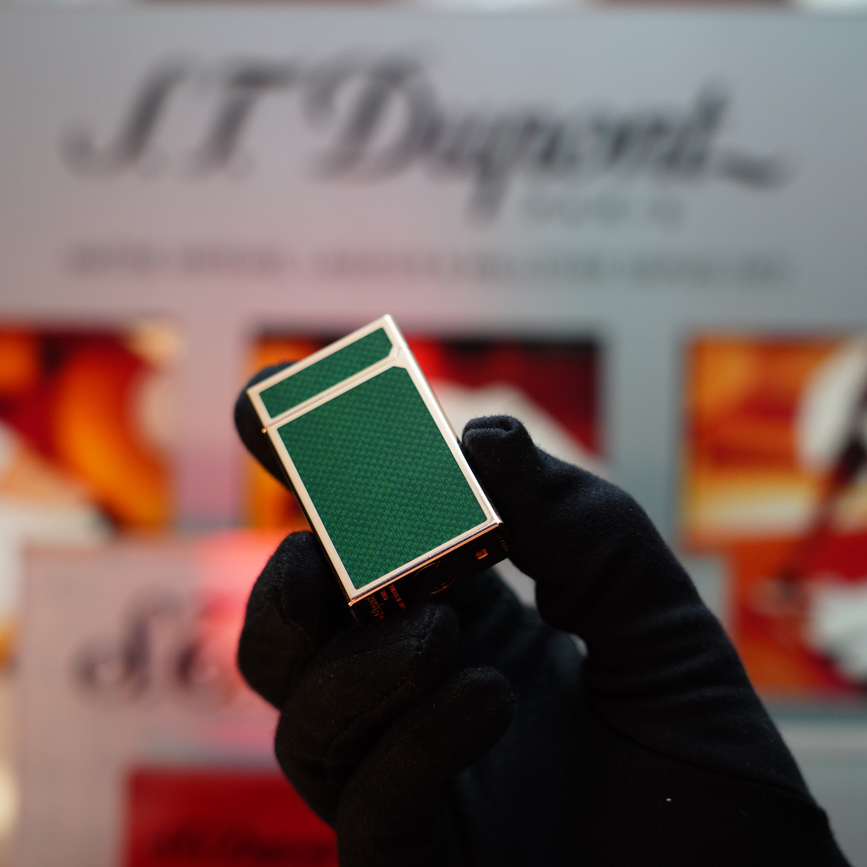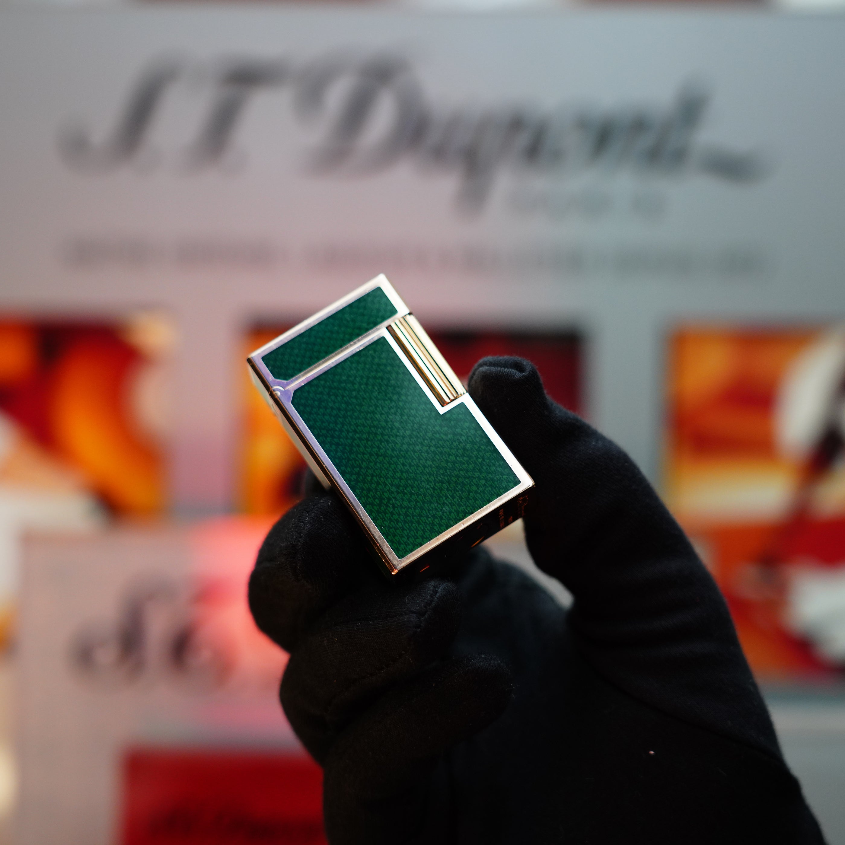 This beautiful Vintage St Dupont Rare Contemporaine Ligne 1 Green Vert Filet Plaq Lacquer 24k Gold Finish Used Lighter was crafted in the 1990. It is a beautiful example of Heavy 24k Gold Plated Limited Large ligne 1 Series