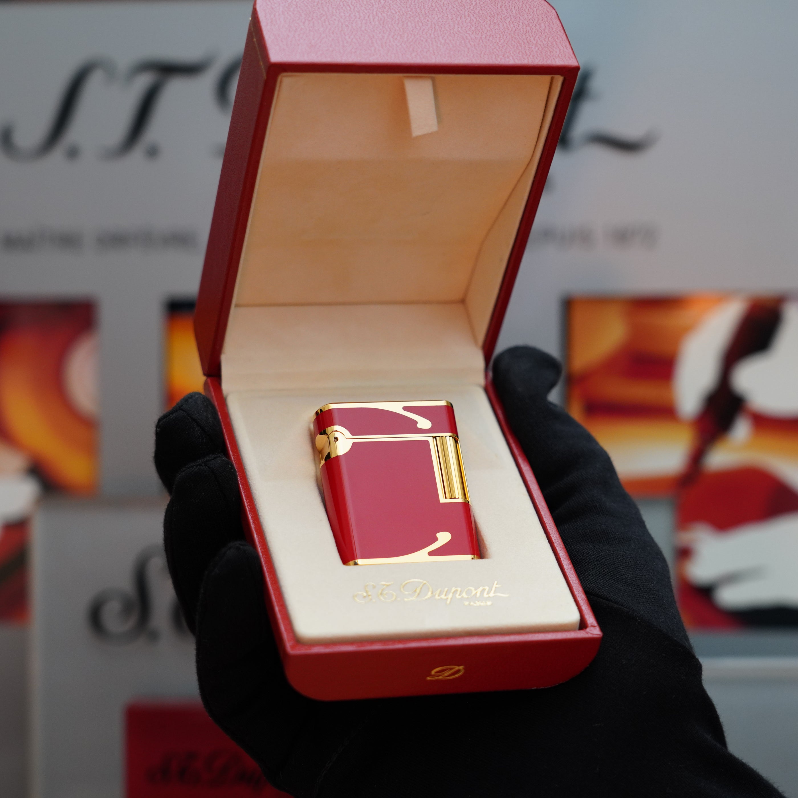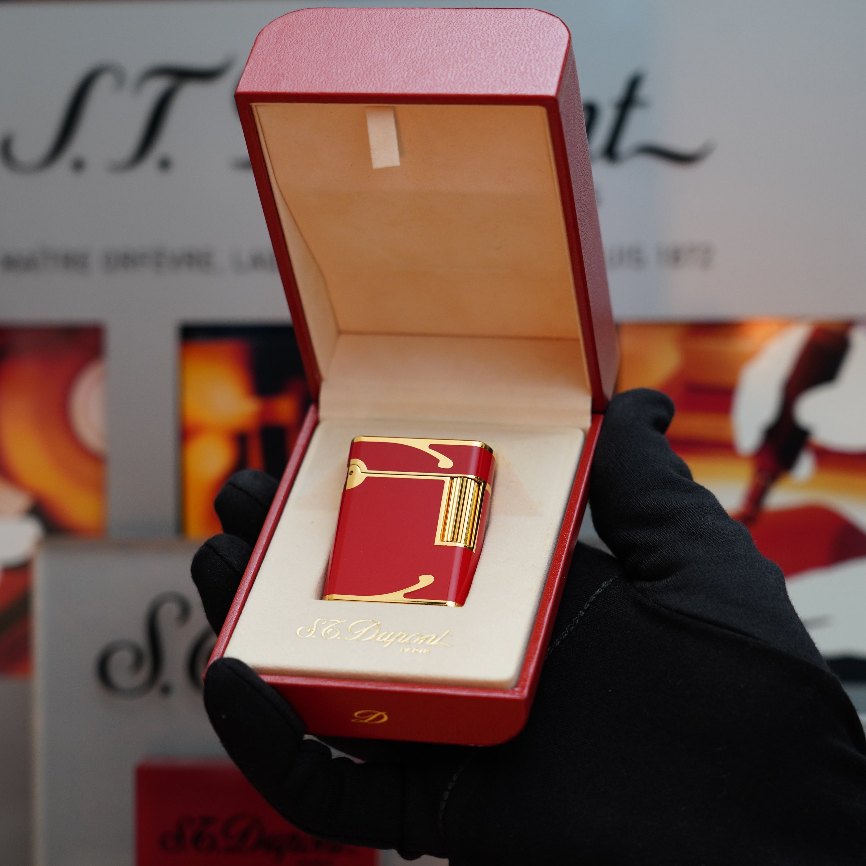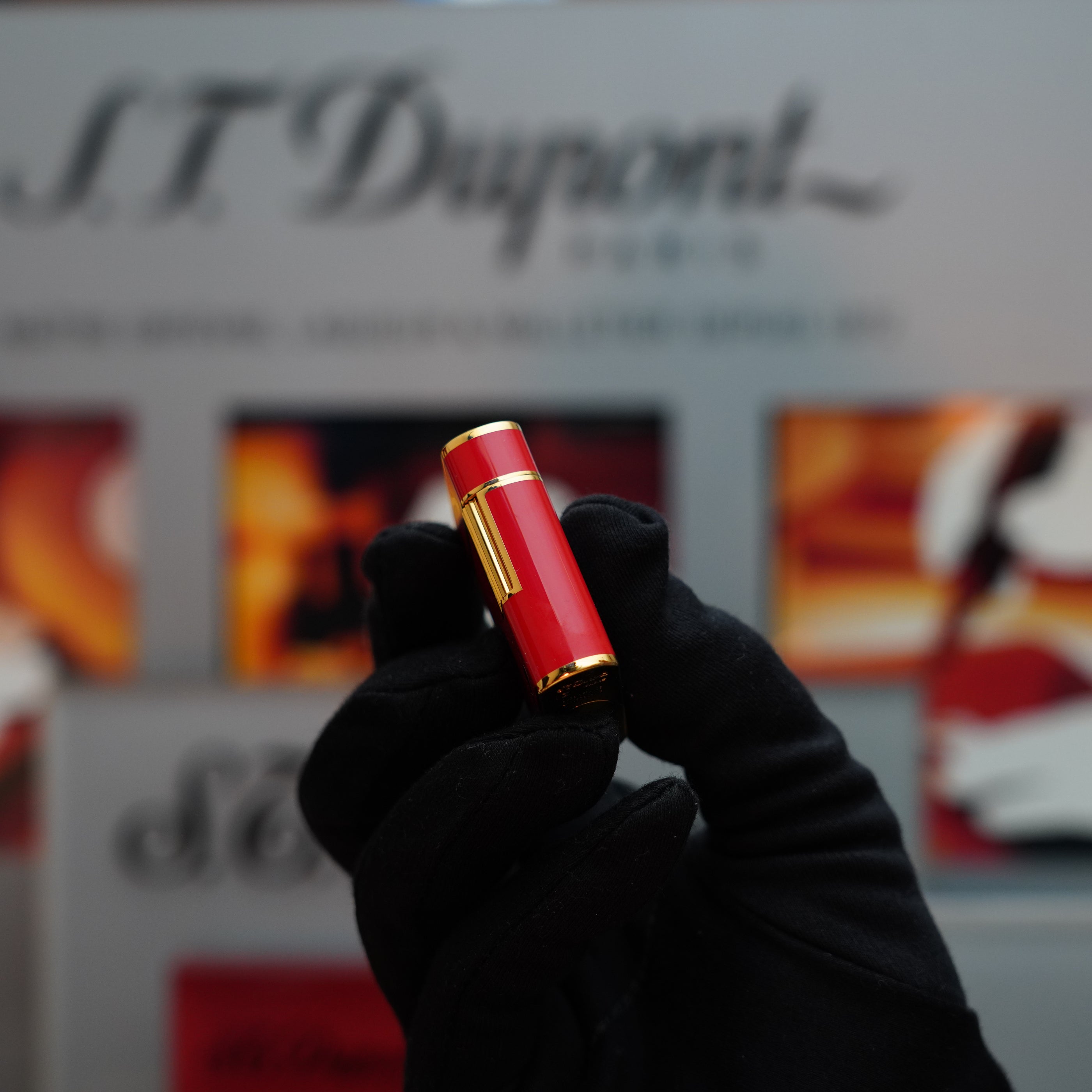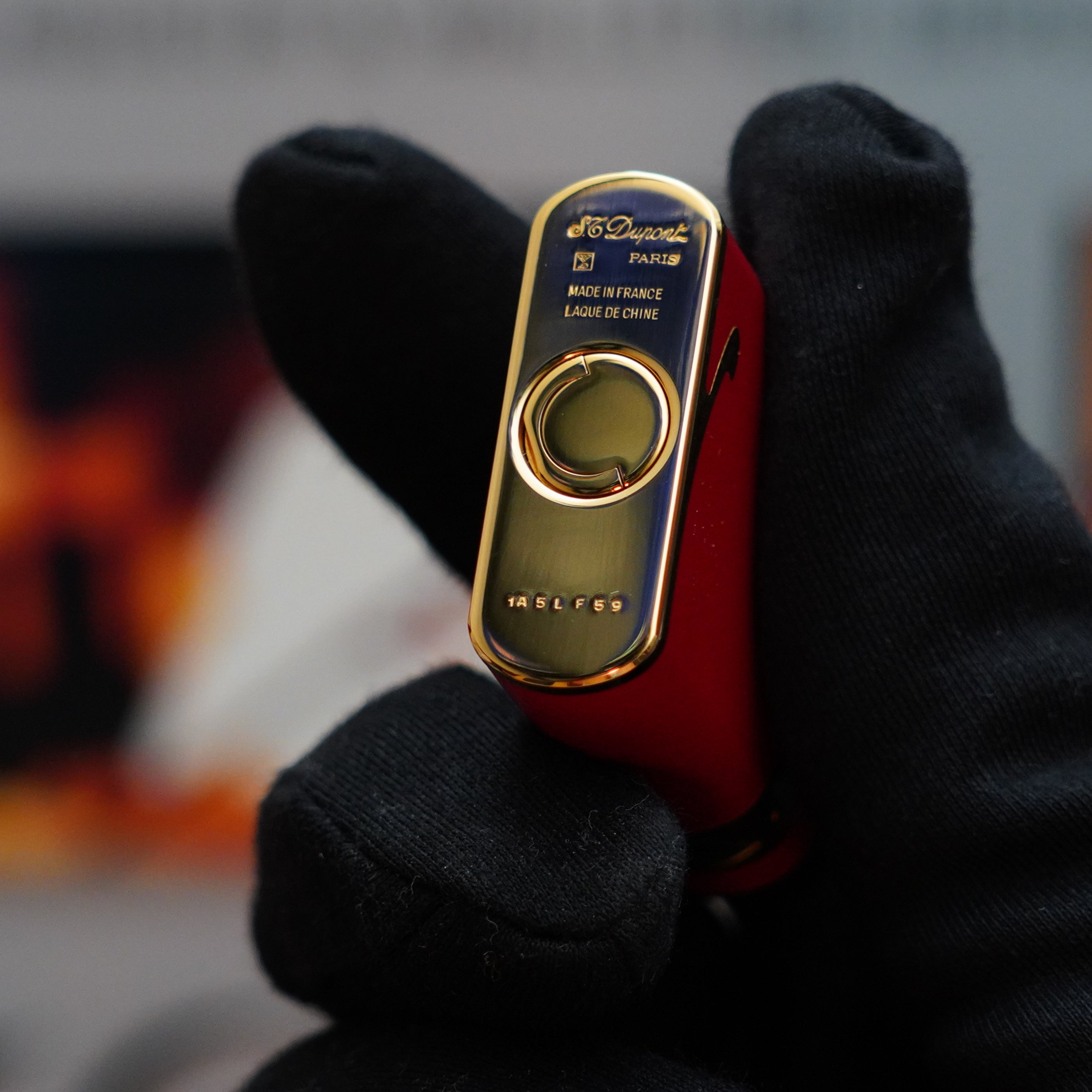 This beautiful Vintage St Dupont rare Ornee Soubreny 24k Gold Finish Red Passion Lacquer Lighter was crafted in the 1990 . It is a beautiful example of Rare Ornee Soubreny 24k Gold Series.