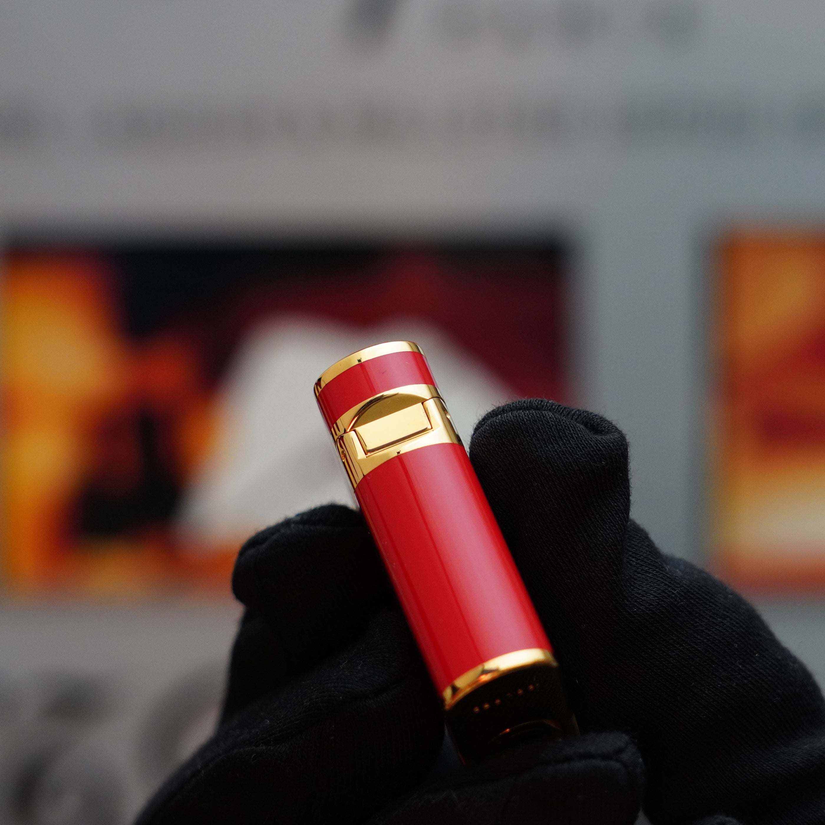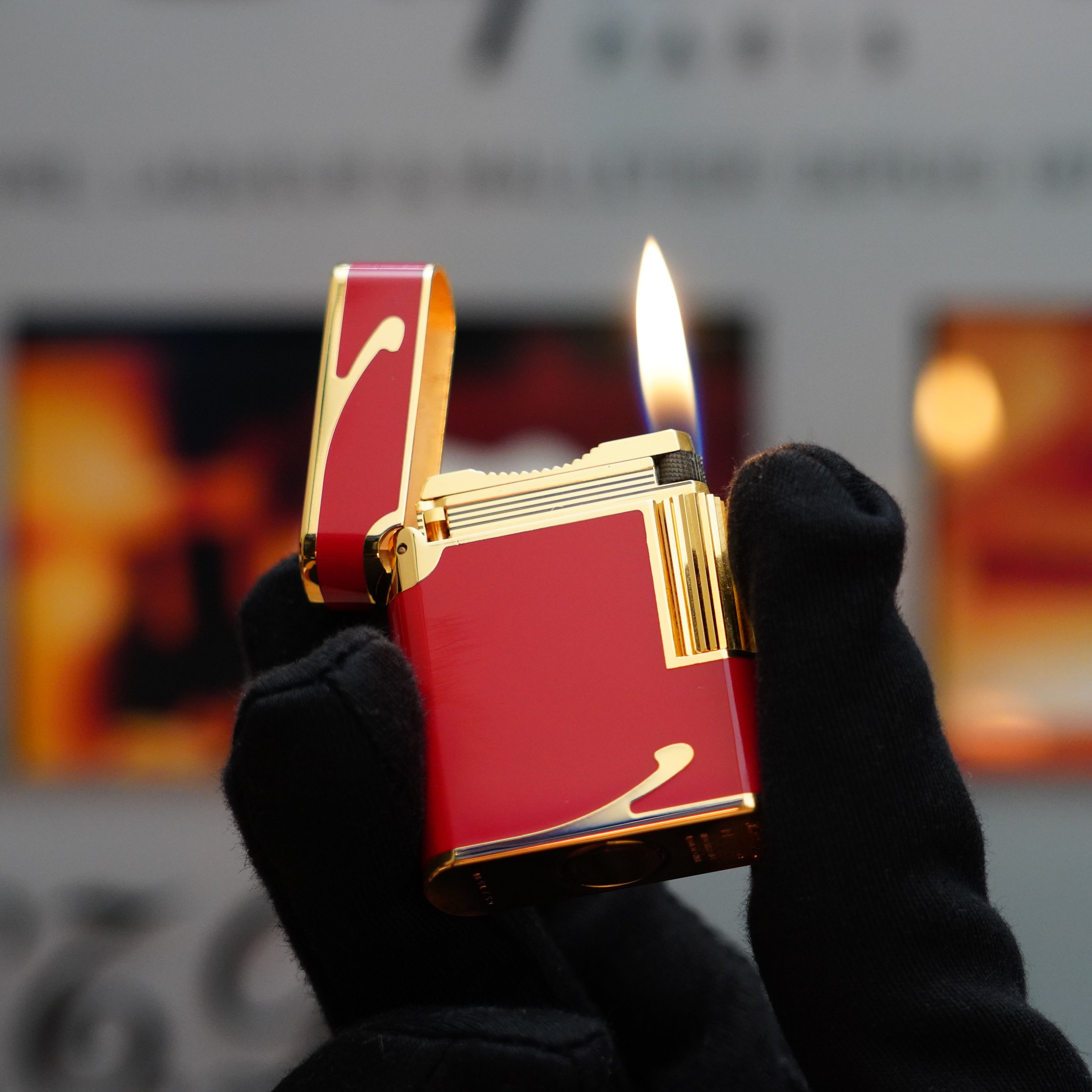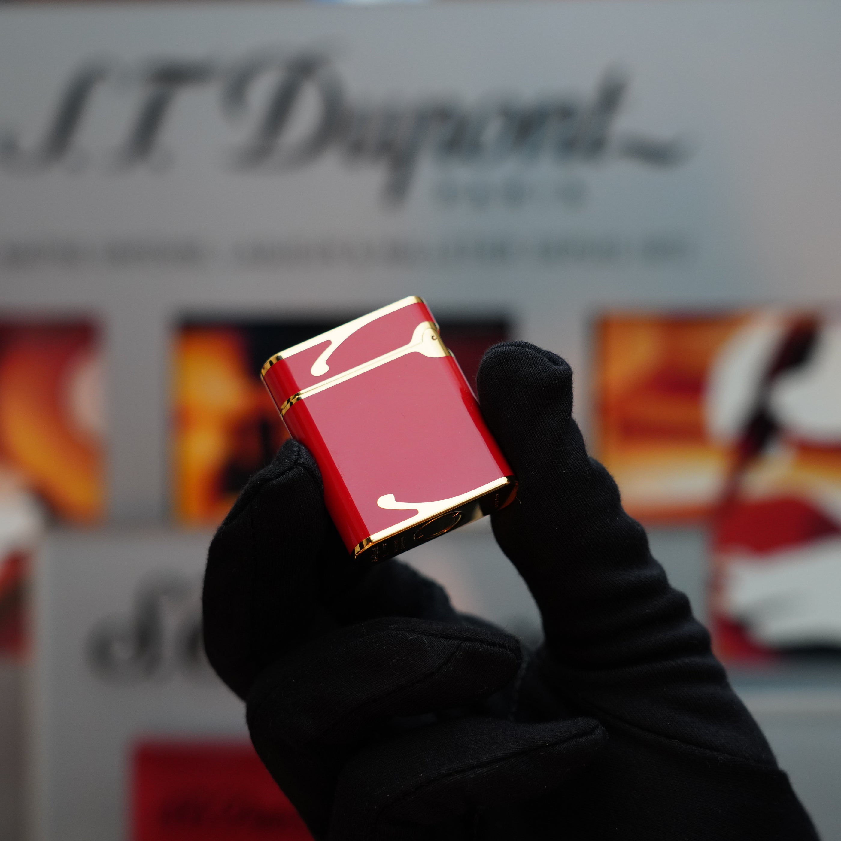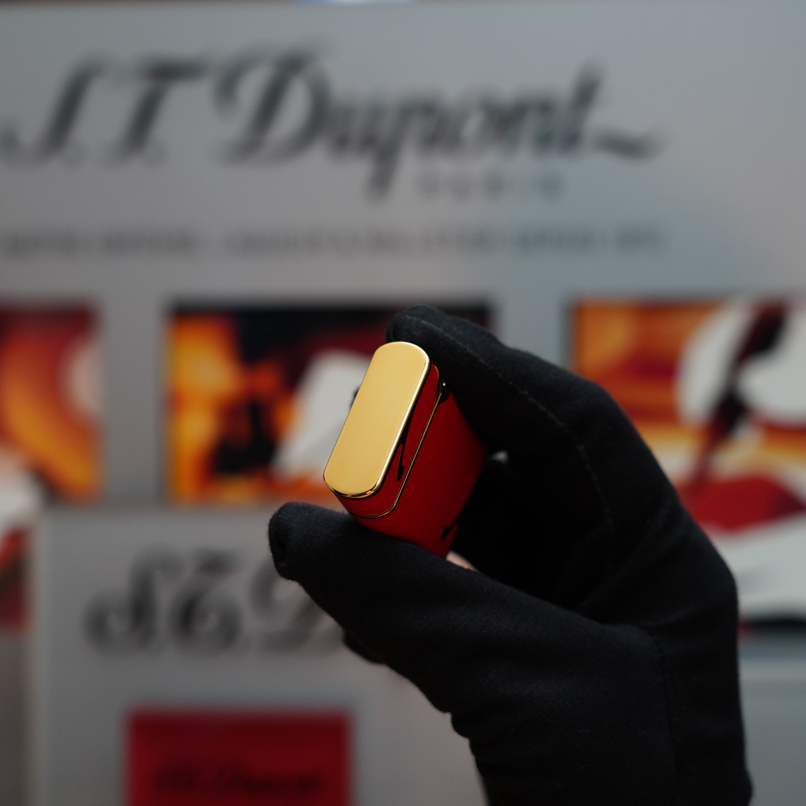 This beautiful Vintage St Dupont rare Ornee Soubreny 24k Gold Finish Red Passion Lacquer Lighter was crafted in the 1990 . It is a beautiful example of Rare Ornee Soubreny 24k Gold Series.