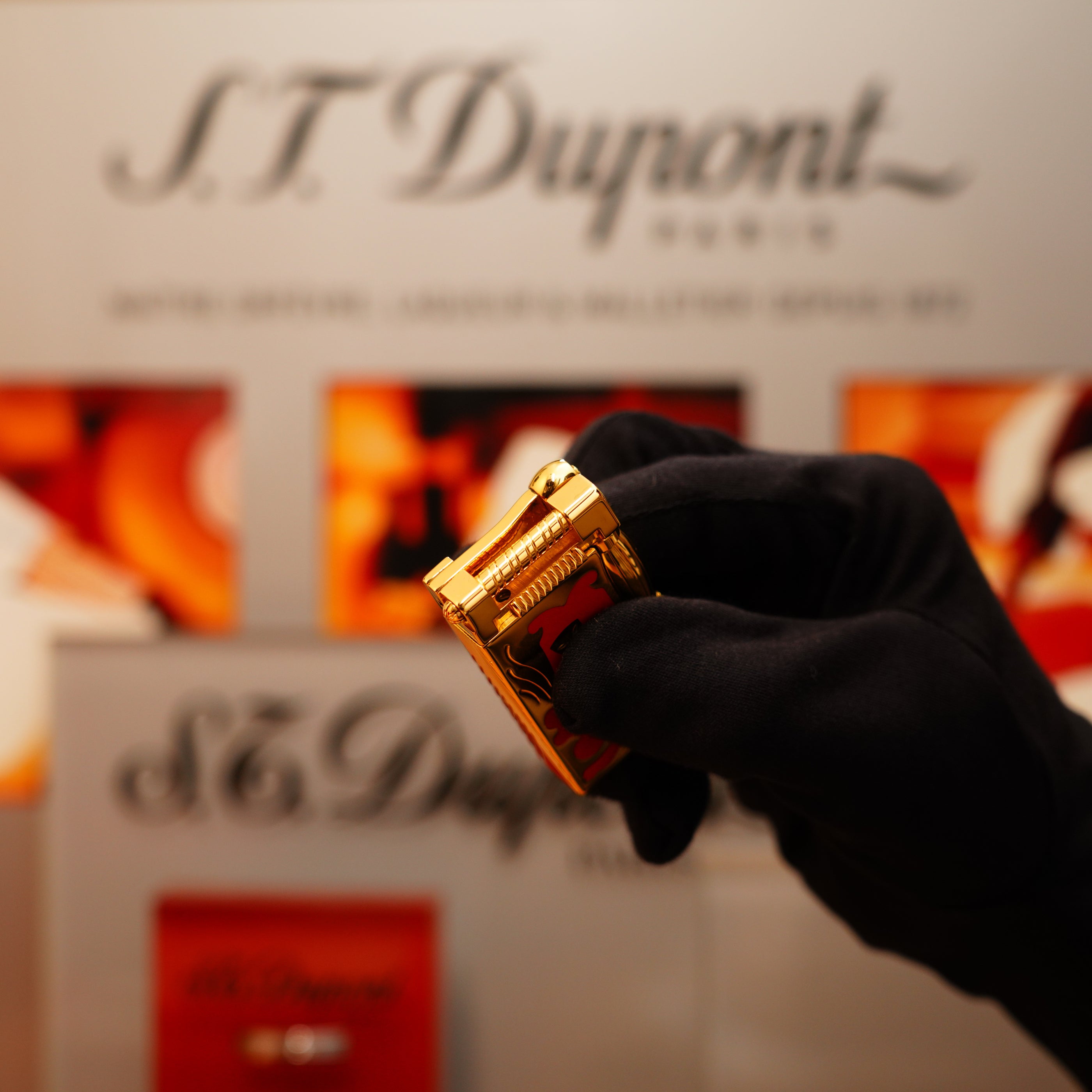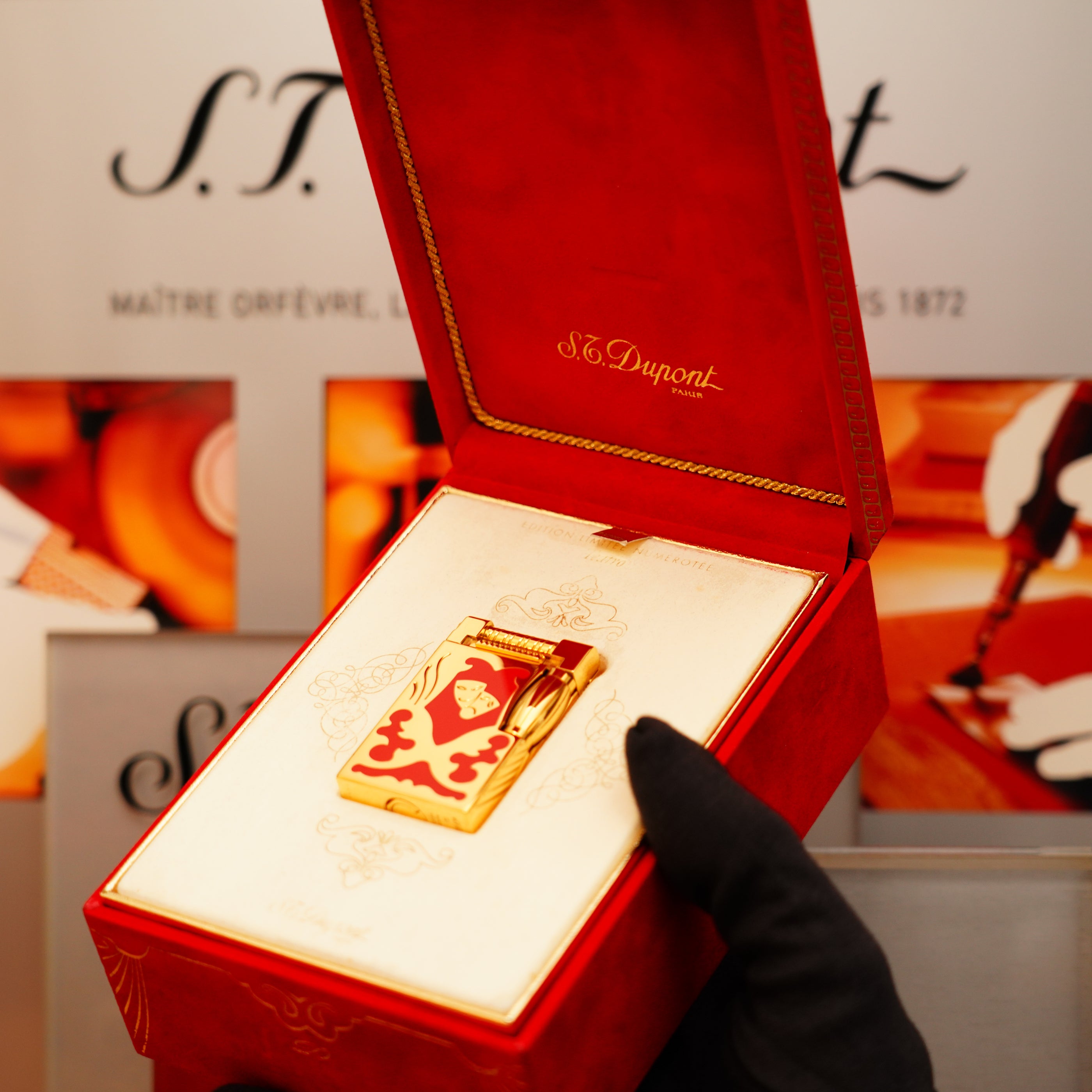 This exquisite vintage 1997 S.T. Dupont Limited Edition lighter features a radiant 24k gold finish accented with deep Red Passion natural lacquer, making it a standout piece from one of the brand’s early limited edition releases.