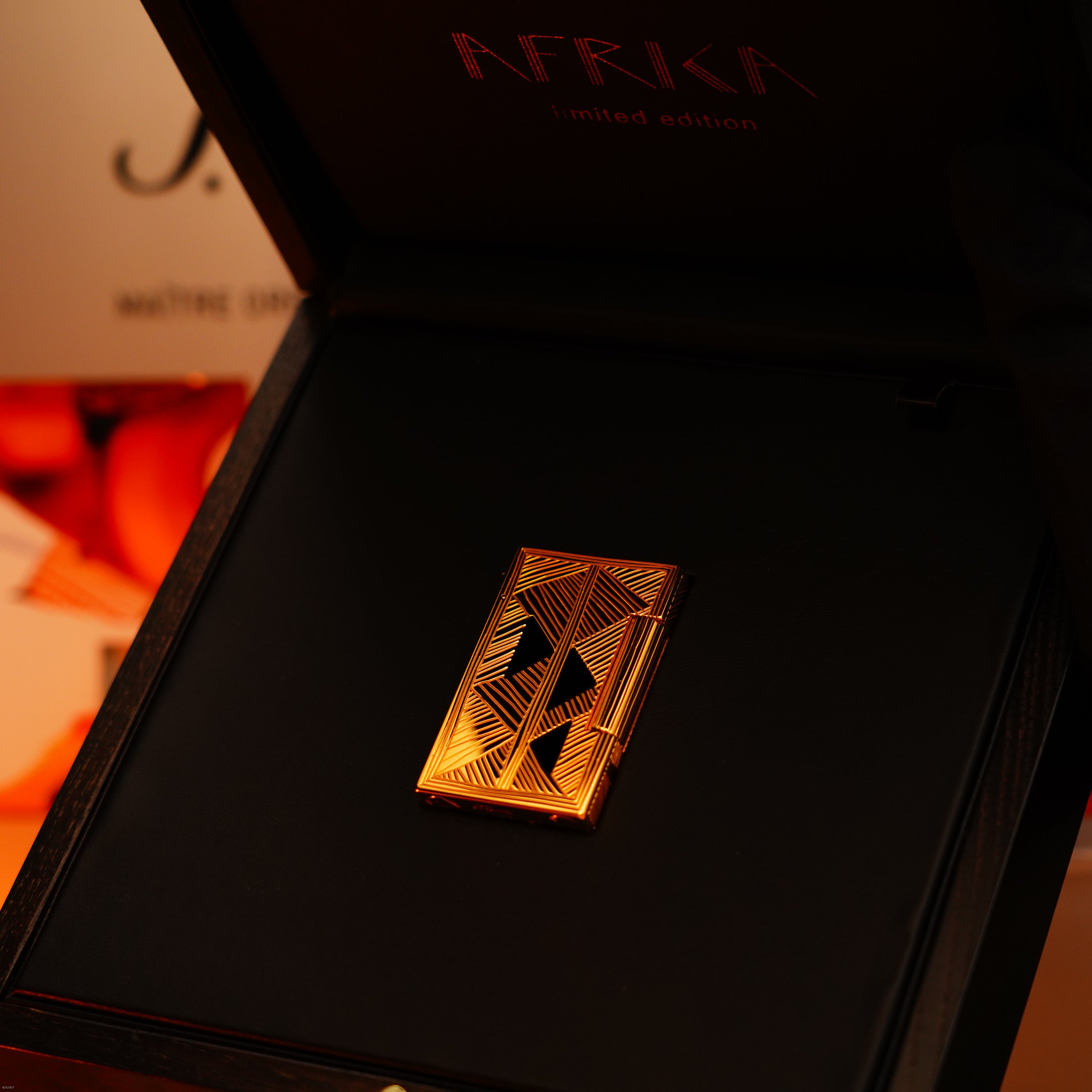 This Vintage 2000 St Dupont Africa Limited Edition Large Ligne 2 Lighter is a stunning and rare masterpiece, featuring a heavy 24k gold finish beautifully combined with rich natural lacquer, inspired by the spirit and artistry of Africa.
