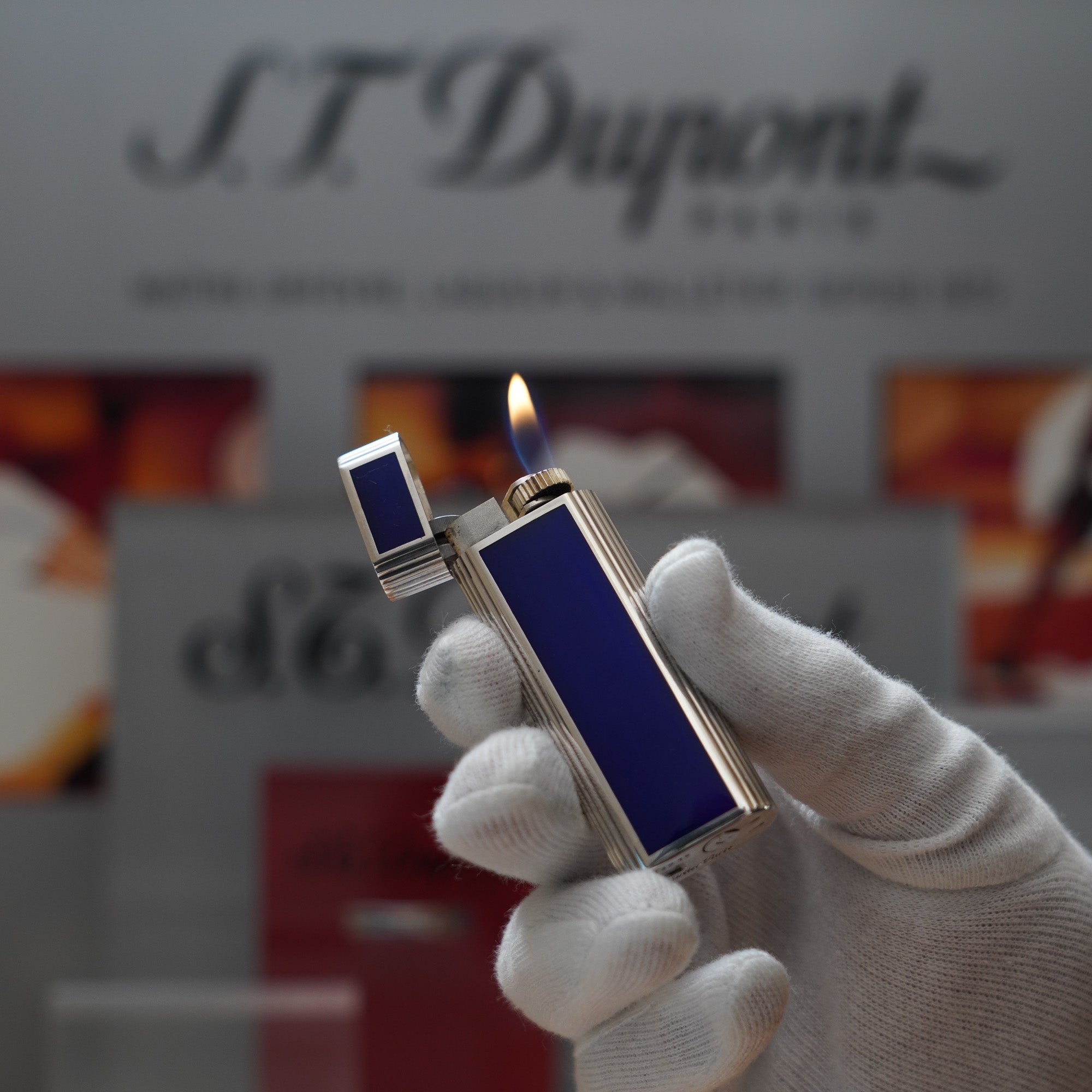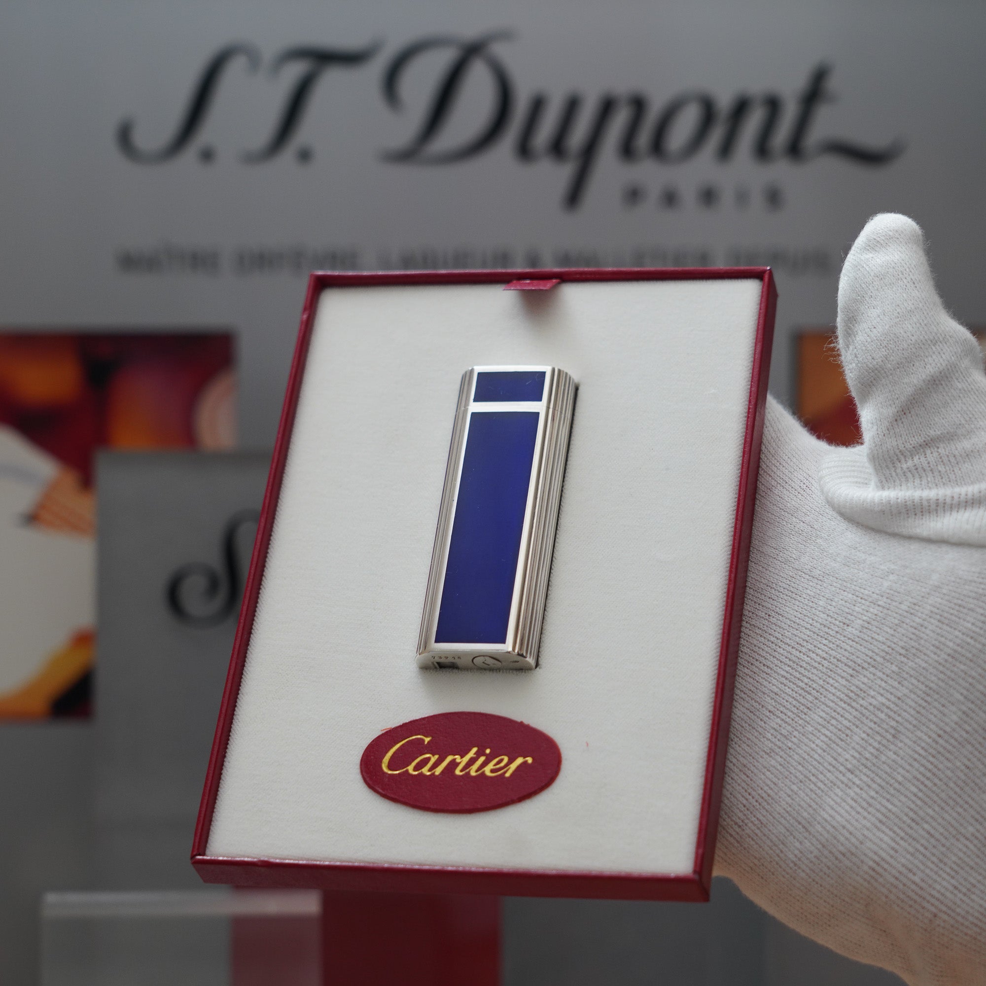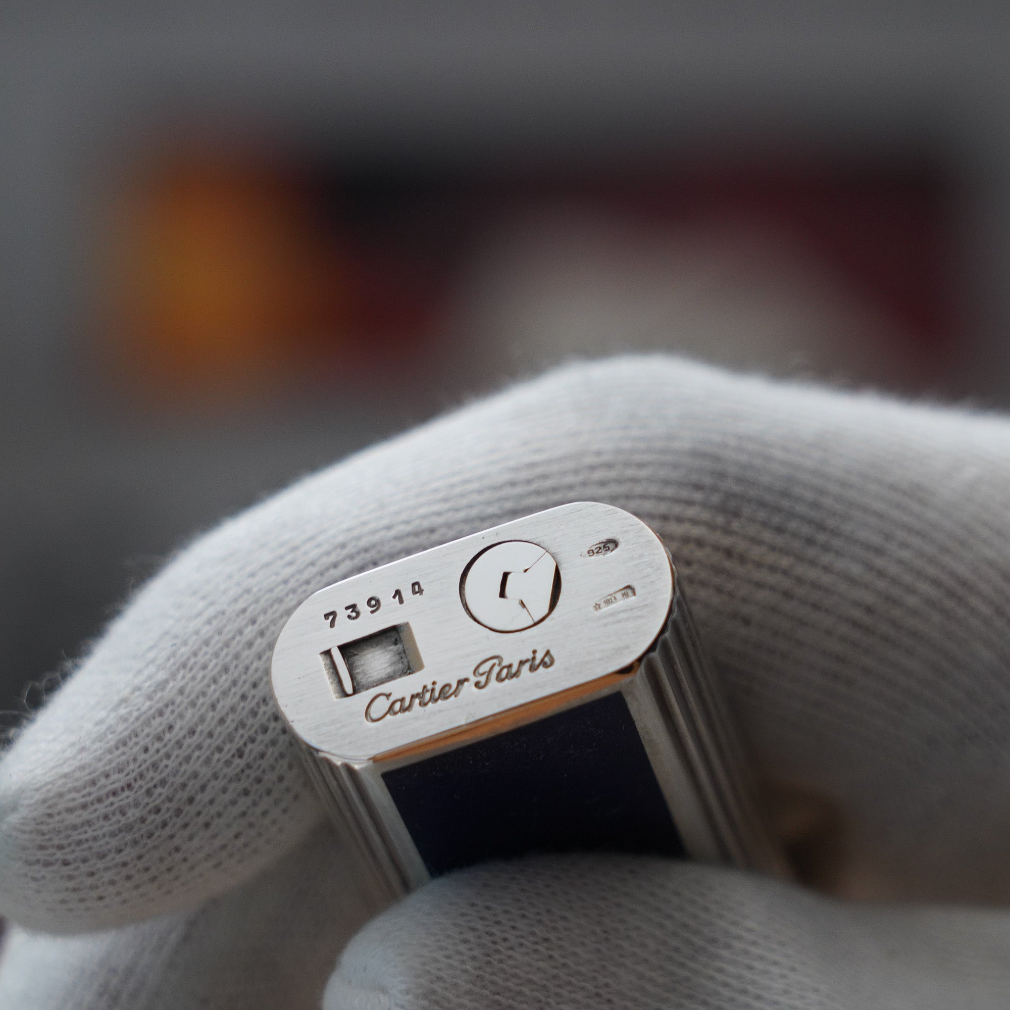 This Cartier sterling lighter from the late 1970s is an exceptional example of the Maison’s early oval-profile design and one of the rarest executions within the Must de Cartier series. Crafted in solid 925 sterling silver and finished with deep blue hand-applied guilloché enamel, it showcases a level of craftsmanship achievable only through highly skilled, labor-intensive work. Enameling on solid silver requires repeated high-temperature firings and precise control to ensure a flawless, vibrant surface, making pieces such as this exceptionally rare. Only a small number of these enameled sterling models were produced, and surviving examples represent some of Cartier’s most collectible creations. This lighter is accompanied by its original premium Cartier box, tool, guarantee card, and passport.