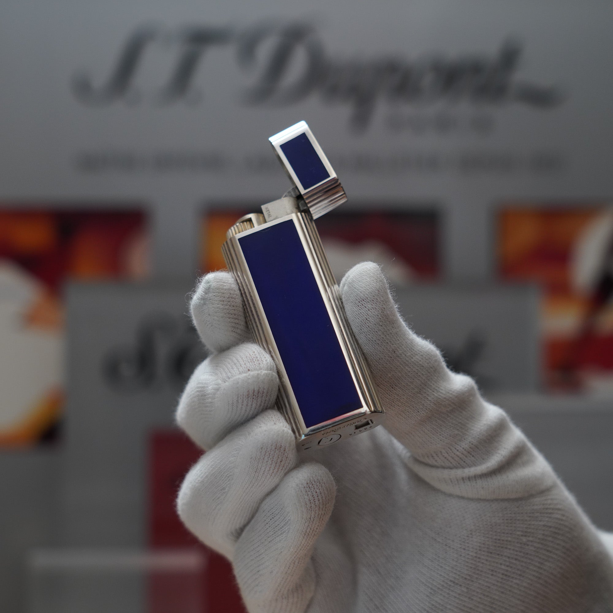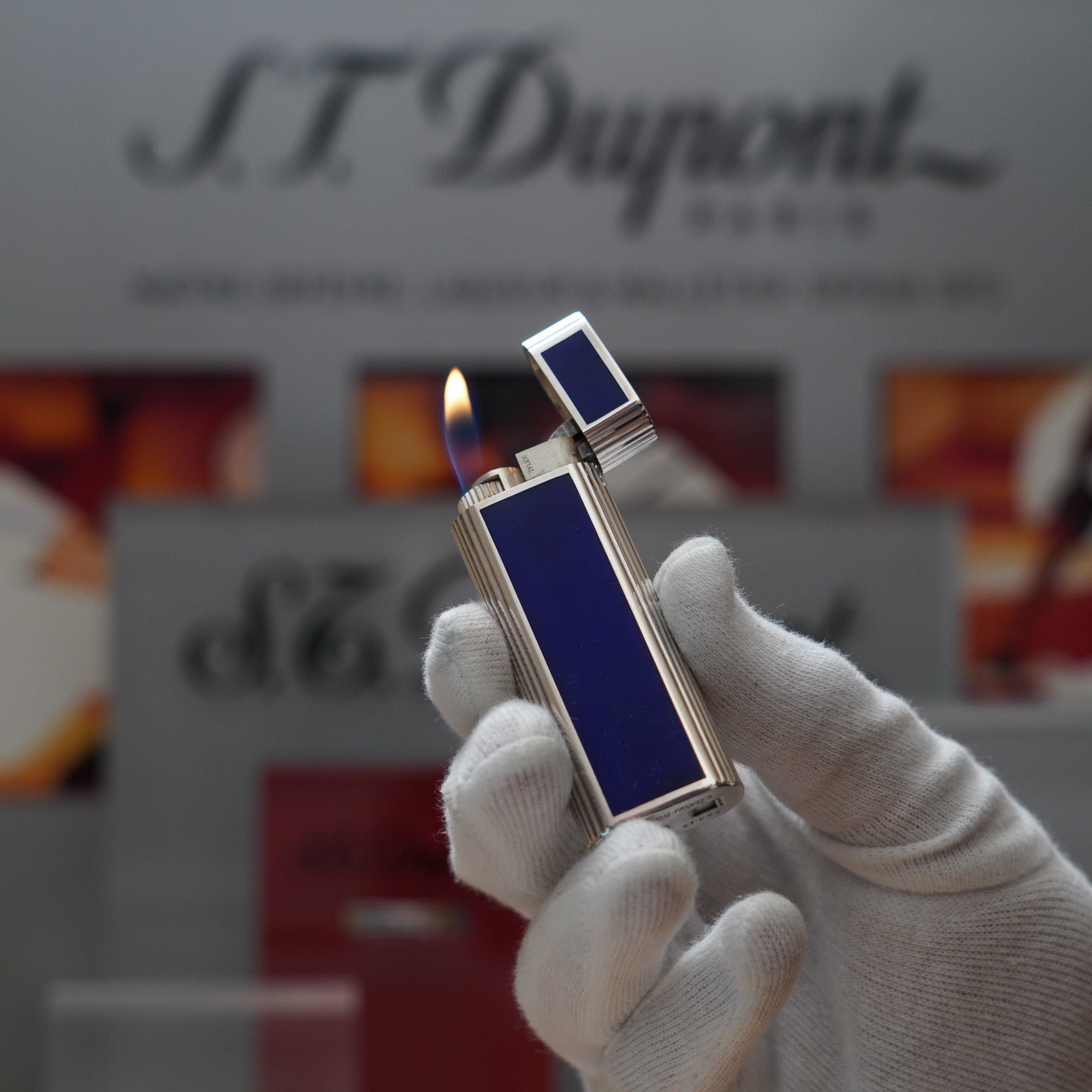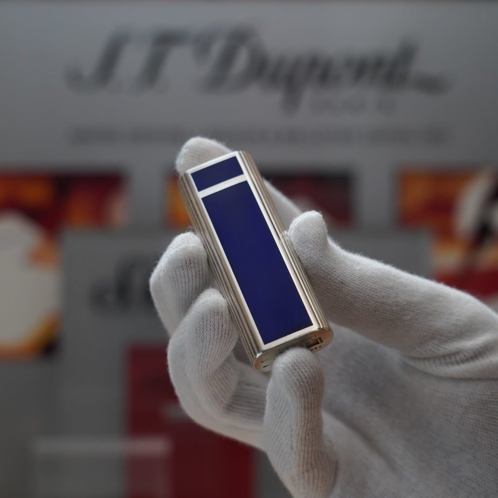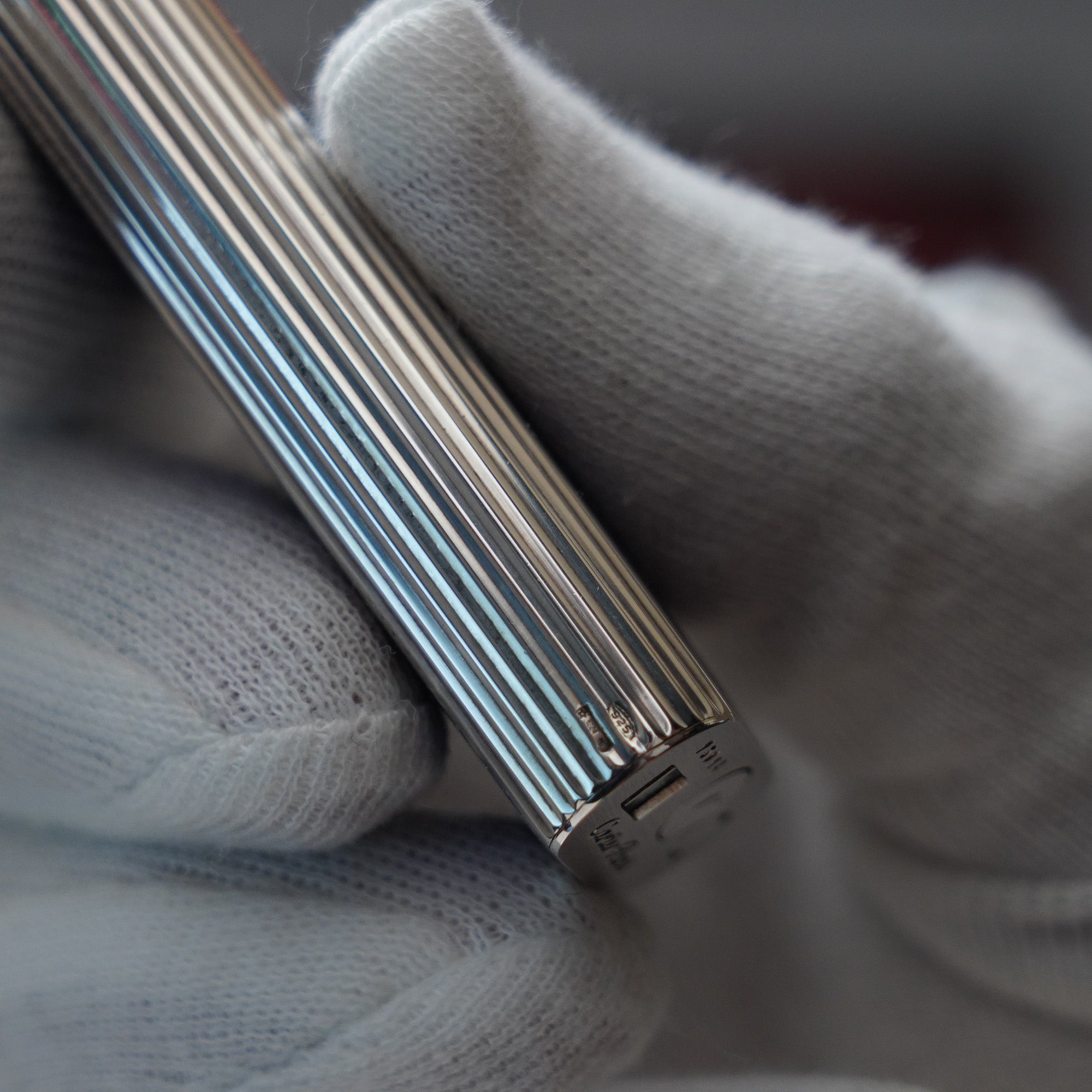 This Cartier sterling lighter from the late 1970s is an exceptional example of the Maison’s early oval-profile design and one of the rarest executions within the Must de Cartier series. Crafted in solid 925 sterling silver and finished with deep blue hand-applied guilloché enamel, it showcases a level of craftsmanship achievable only through highly skilled, labor-intensive work. Enameling on solid silver requires repeated high-temperature firings and precise control to ensure a flawless, vibrant surface, making pieces such as this exceptionally rare. Only a small number of these enameled sterling models were produced, and surviving examples represent some of Cartier’s most collectible creations. This lighter is accompanied by its original premium Cartier box, tool, guarantee card, and passport.