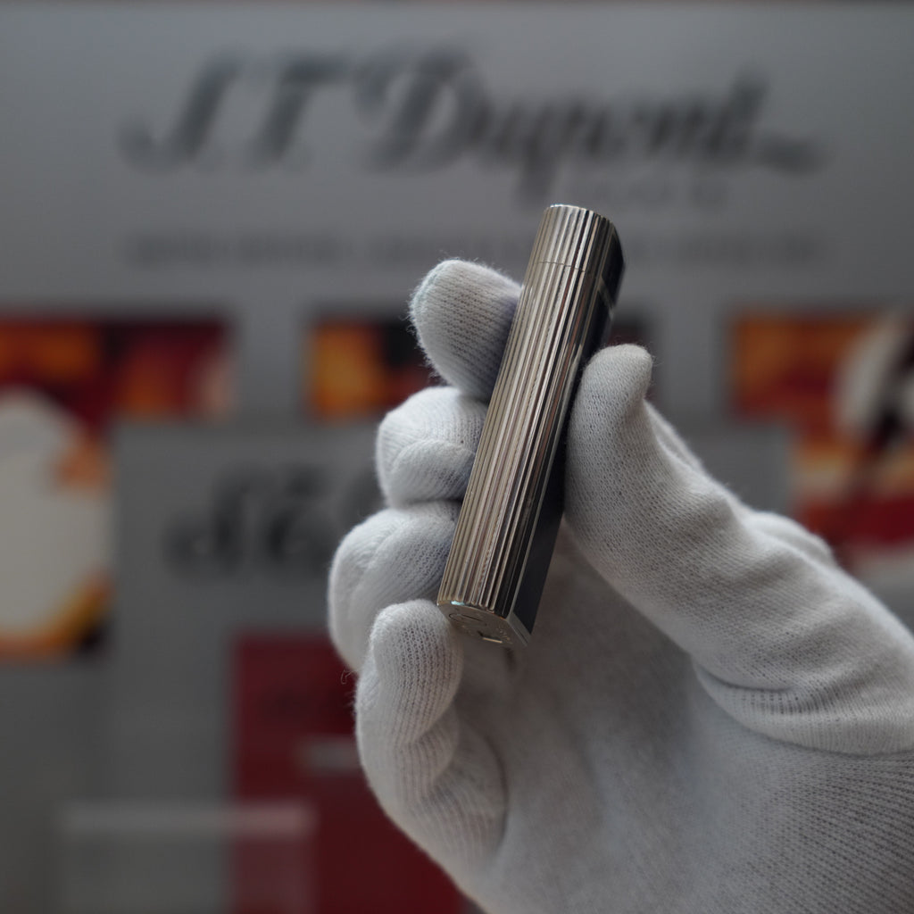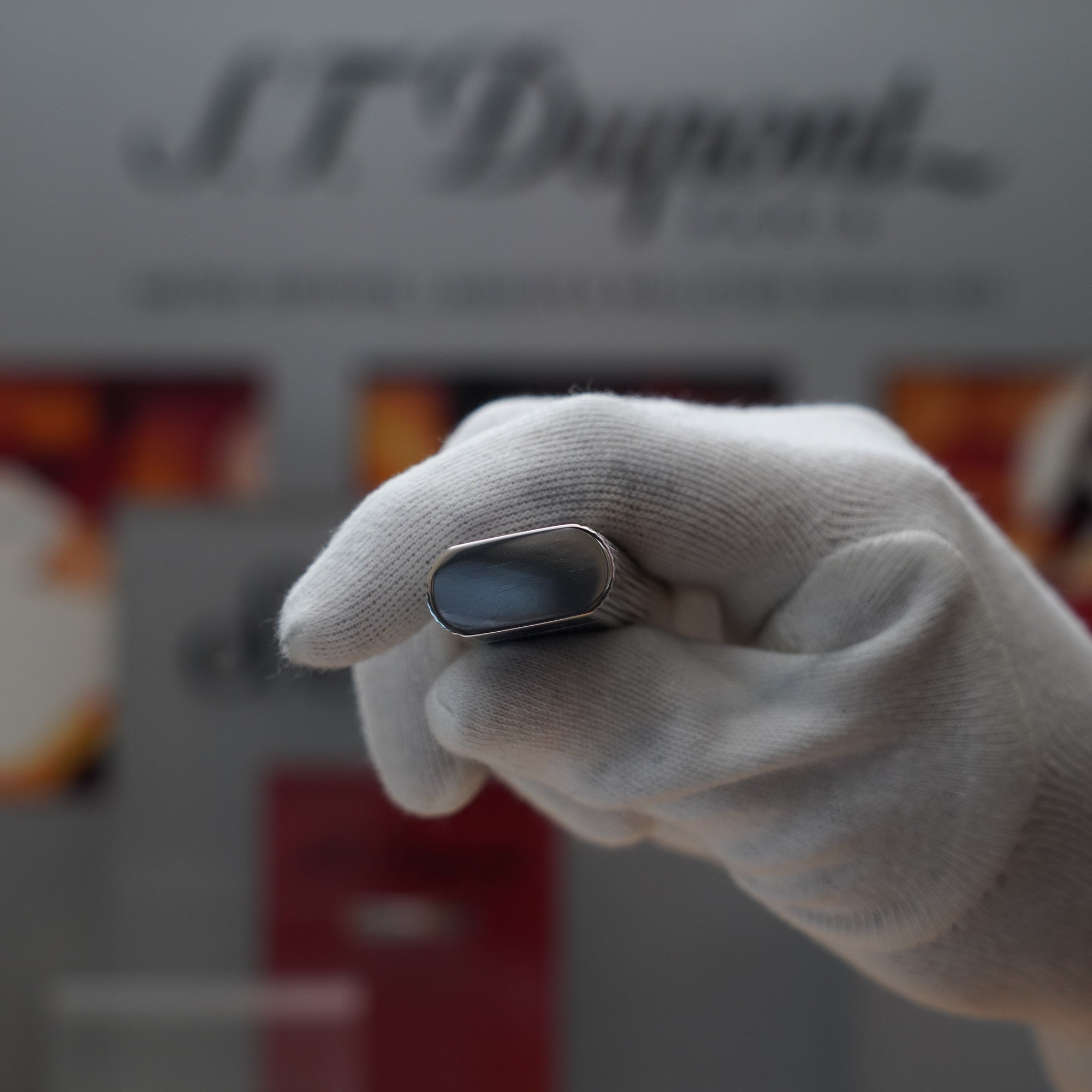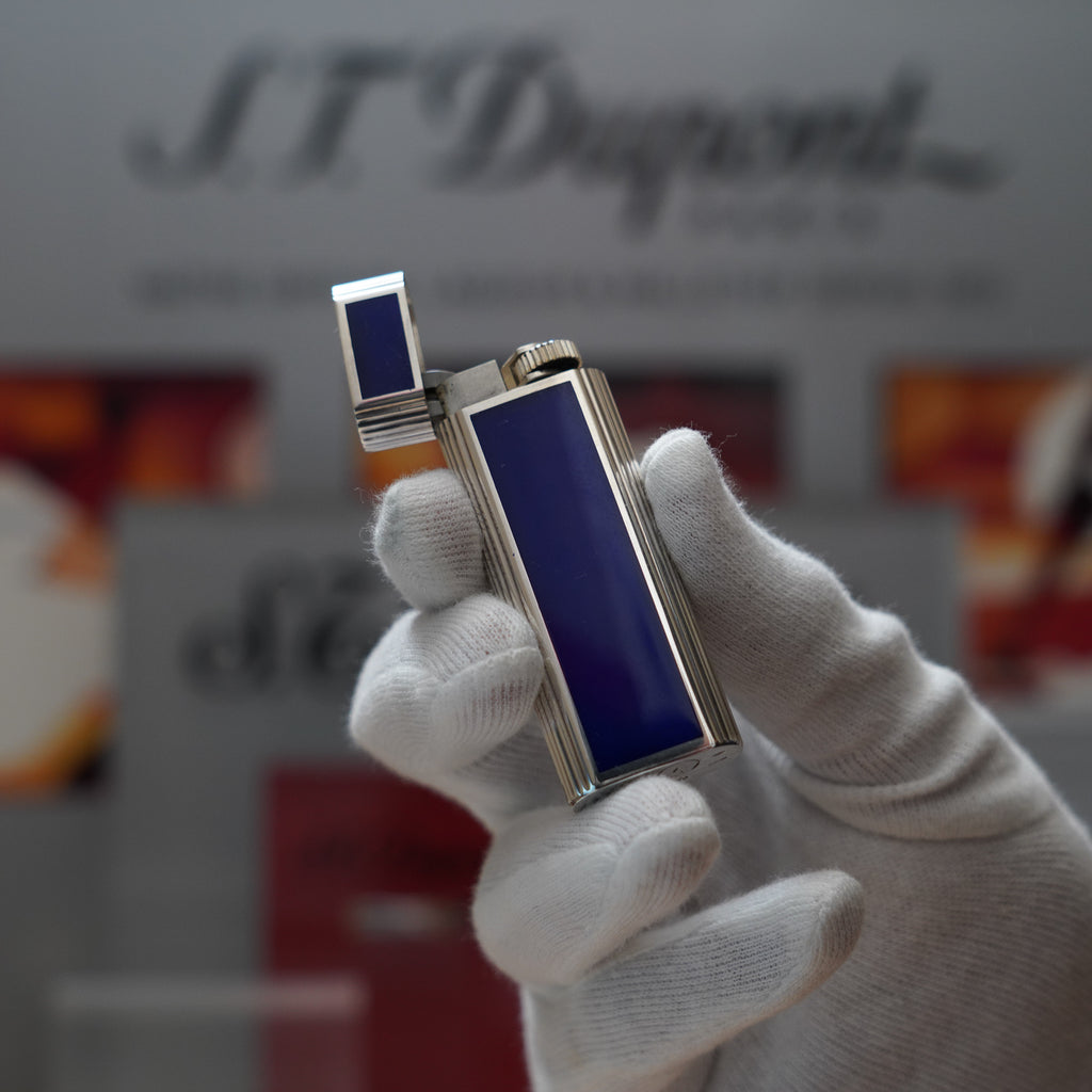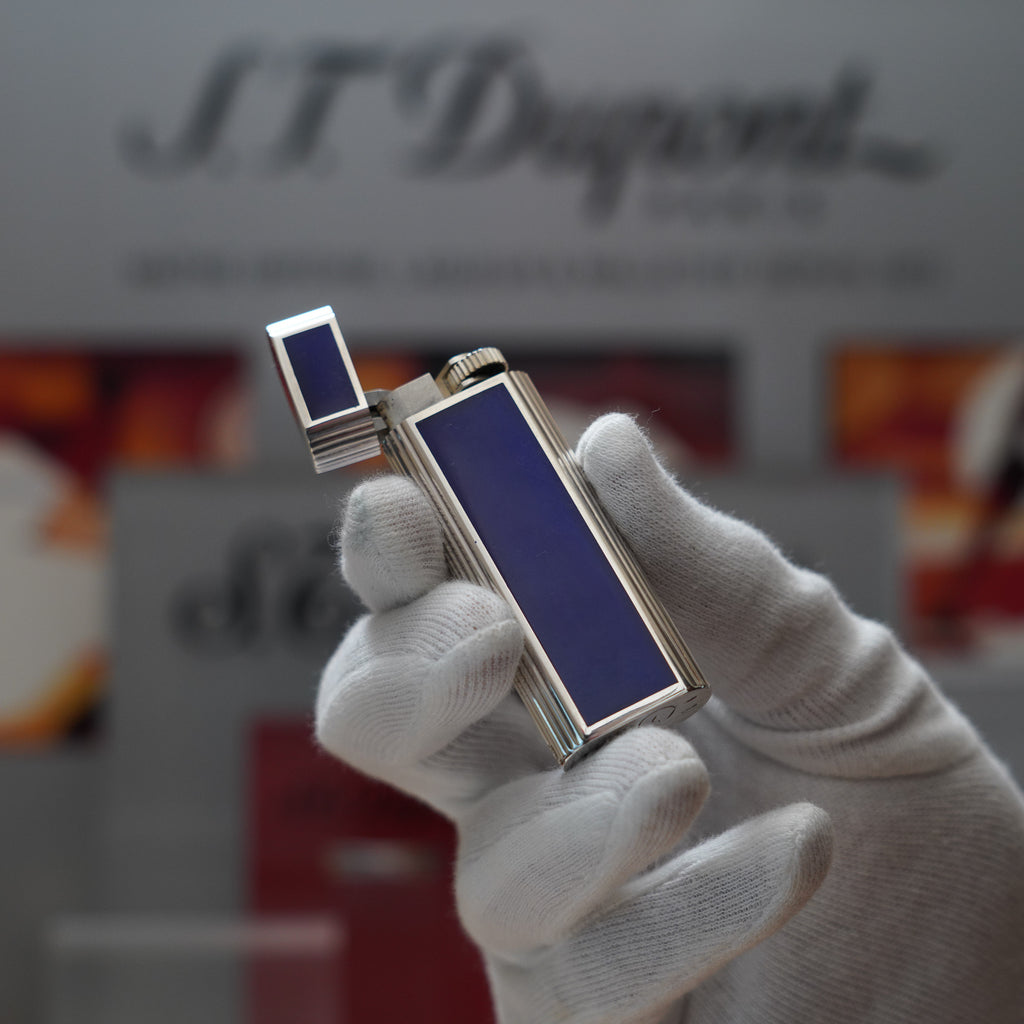 This Cartier sterling lighter from the late 1970s is an exceptional example of the Maison’s early oval-profile design and one of the rarest executions within the Must de Cartier series. Crafted in solid 925 sterling silver and finished with deep blue hand-applied guilloché enamel, it showcases a level of craftsmanship achievable only through highly skilled, labor-intensive work. Enameling on solid silver requires repeated high-temperature firings and precise control to ensure a flawless, vibrant surface, making pieces such as this exceptionally rare. Only a small number of these enameled sterling models were produced, and surviving examples represent some of Cartier’s most collectible creations. This lighter is accompanied by its original premium Cartier box, tool, guarantee card, and passport.
