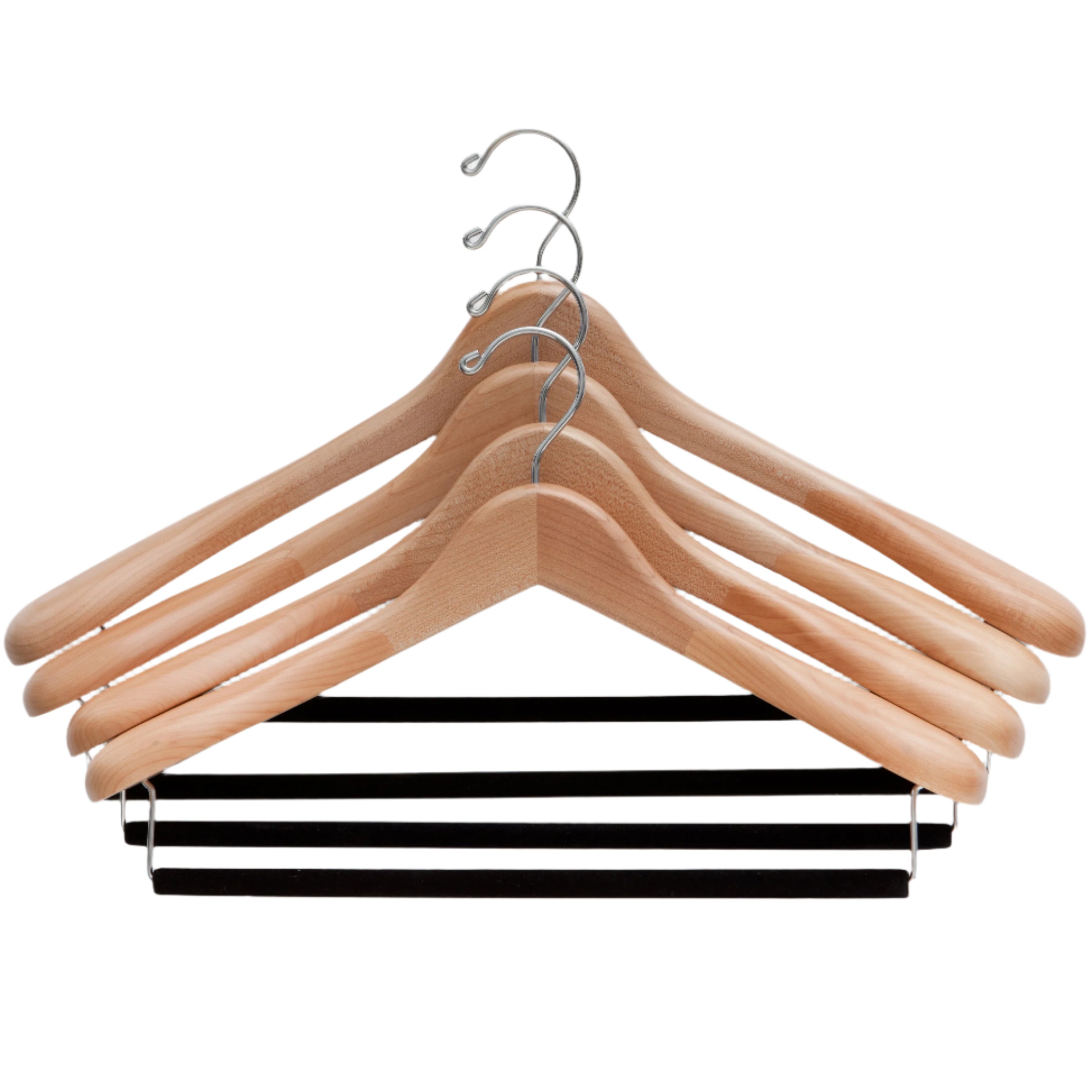 Praised as "an enthusiastic best overall" by The Wall Street Journal, these hangers combine functionality and style seamlessly. Crafted with meticulous care, they offer optimal support and prevent unsightly creases and wrinkles. Made from high-quality wood, our hangers are designed to protect your suits, ensuring they maintain their impeccable shape and appearance. Elevate your wardrobe and invest in our Luxury Wooden Suit Hangers to enjoy the lasting elegance of your favorite garments.
