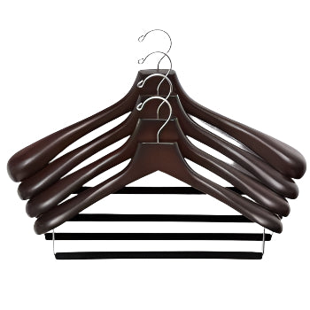 Praised as "an enthusiastic best overall" by The Wall Street Journal, these hangers combine functionality and style seamlessly. Crafted with meticulous care, they offer optimal support and prevent unsightly creases and wrinkles. Made from high-quality wood, our hangers are designed to protect your suits, ensuring they maintain their impeccable shape and appearance. Elevate your wardrobe and invest in our Luxury Wooden Suit Hangers to enjoy the lasting elegance of your favorite garments.